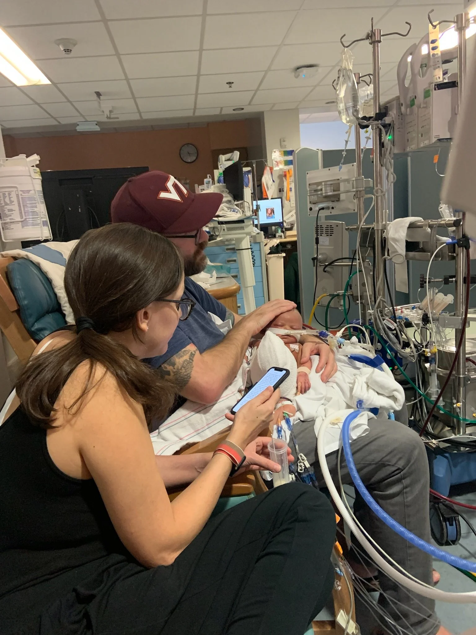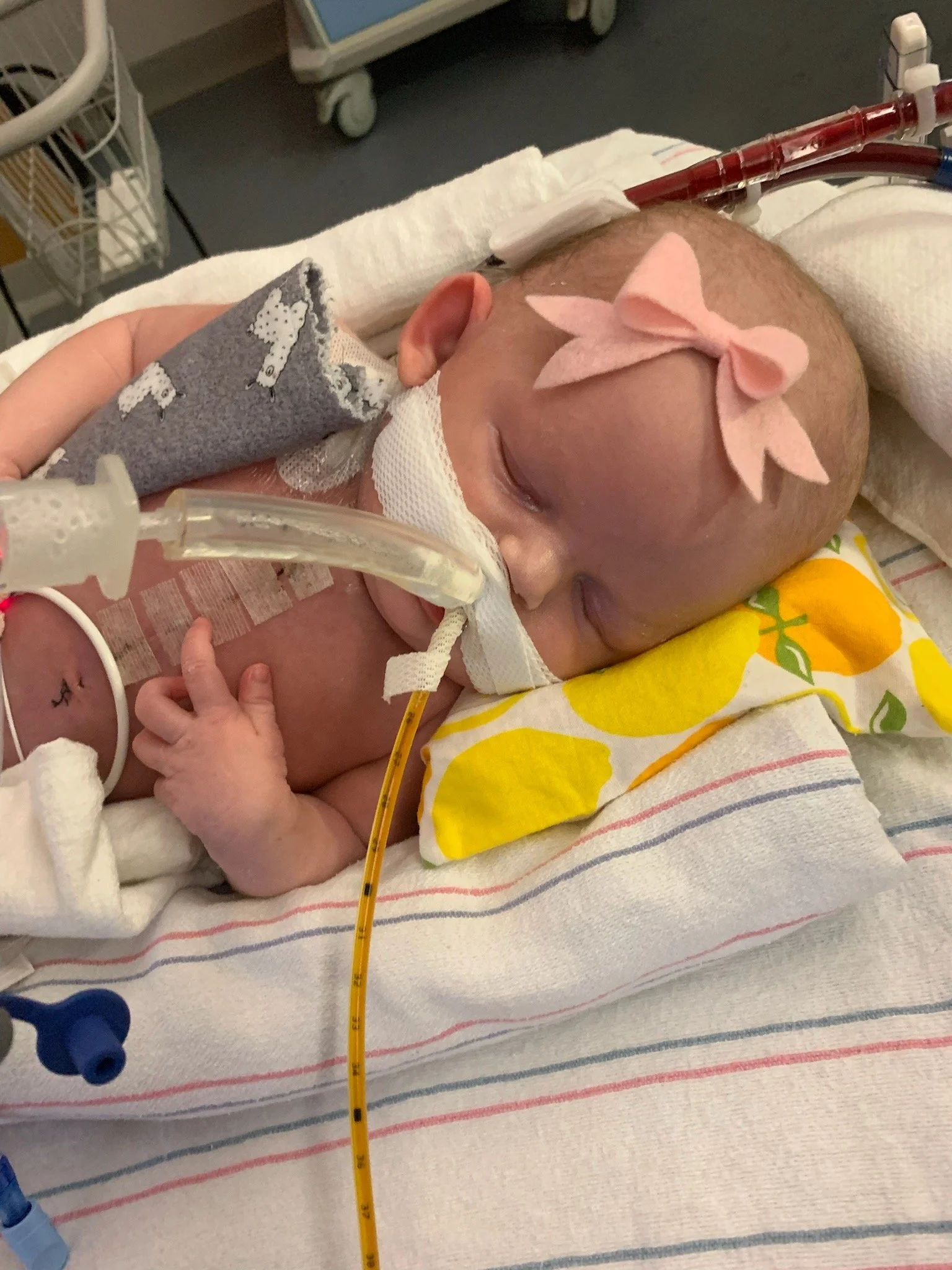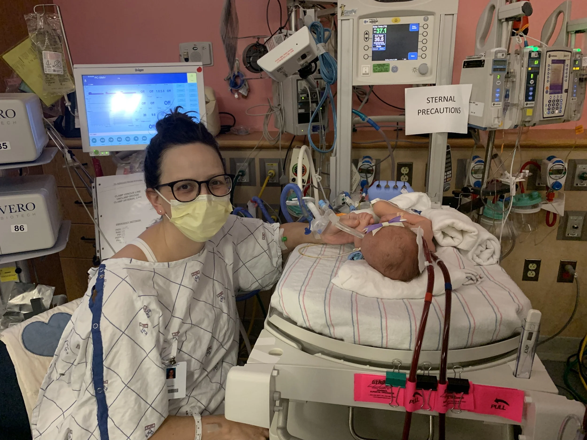 After about 6 hours, we were notified that the baby needed ECMO. This was not going to be a typical CDH course - ECMO is effectively a version of life support and while not unusual for CDH patients, it’s for more severe cases. We knew this could happen and were relieved that the procedure to get her onto ECMO, which is significant, was successful. Unfortunately, not even 2 hours later, the surgeon was back in our room telling us the baby had unusual fluid buildup around her heart and would require exploratory surgery immediately and that she was in critical condition. They suspected she may have a perforated heart or an undiagnosed defect and her life was in danger.