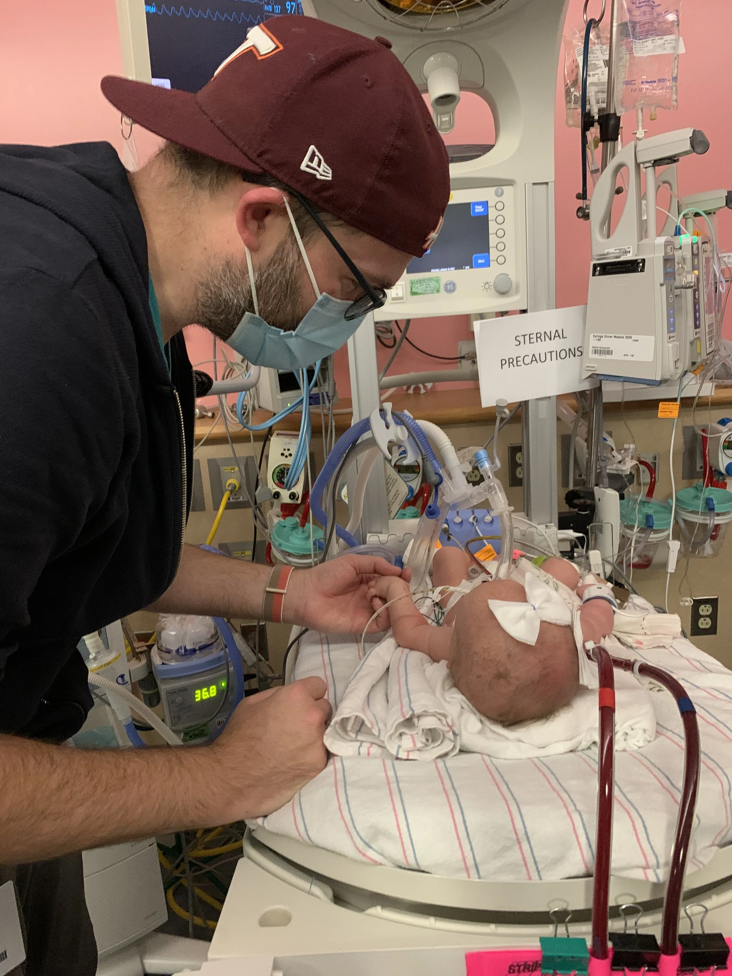 On Tuesday, February 8, we had a “family meeting” scheduled with the full multidisciplinary team - surgery, neonatology, cardiology, psychology, social work, nursing… you name it. We expected it to be a presentation explaining Brighton’s go-forward course of treatment. Instead, it was essentially the two of us in front of about 15 people as the doctors told us that Brighton was likely not going to make it. The surgery was incredibly hard on her and along with her profusion issues, her lungs just did not have the vascular support to survive off of ECMO. They were going to see over the next couple of days what her progress was like and we would try again to get her off ECMO, but her chances were low and we should bring our families into town.