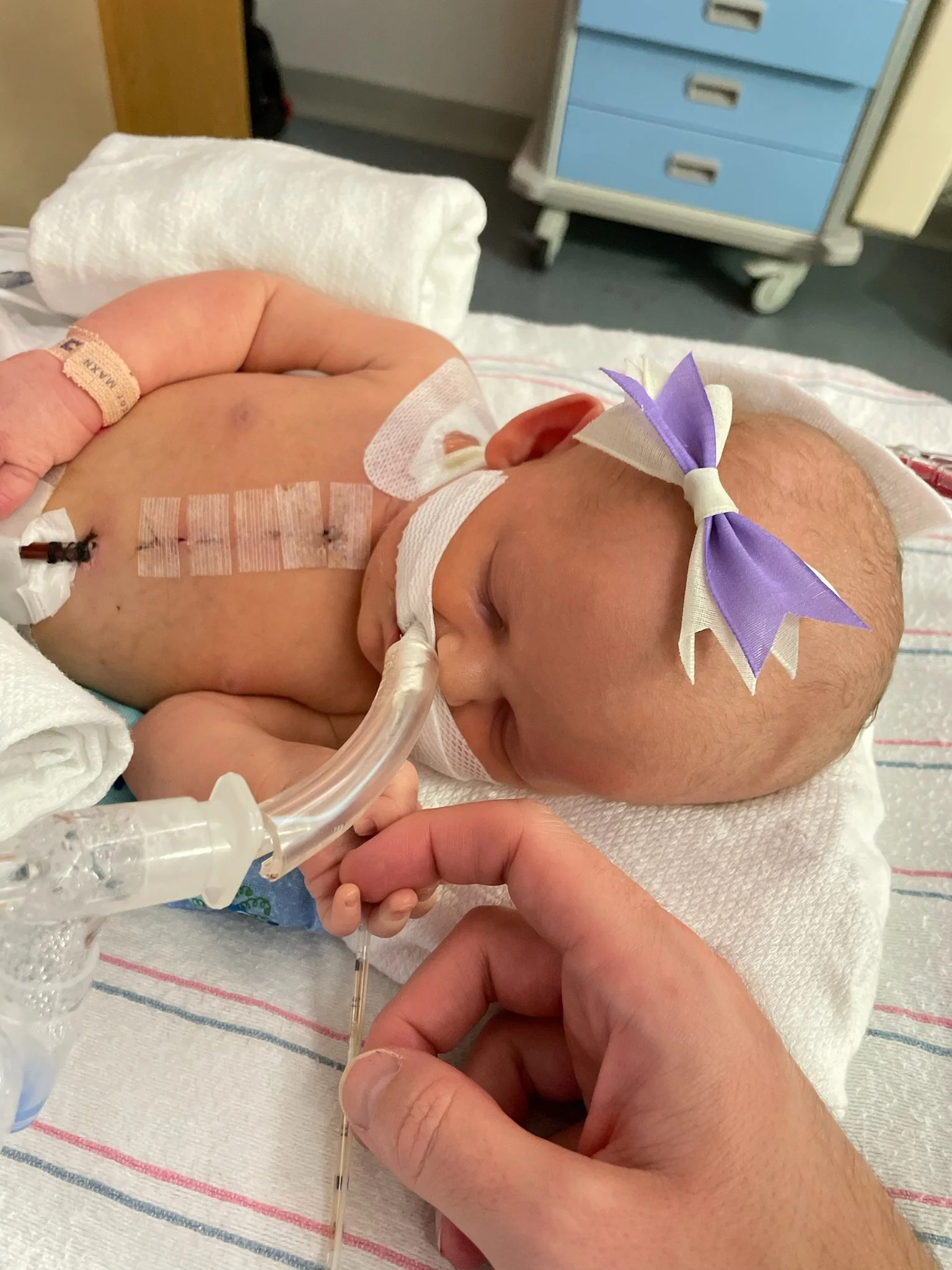 After a tense couple hours, the chief of cardiac surgery called to let us know they did not find anything wrong with her heart, though they remained a bit confused about the fluid buildup. We were relieved momentarily and the doctors all said she’d returned to being “cautiously stable.” She had a long road ahead but after an intense first 24 hours, she had begun to settle into her treatment and we could start thinking about a future. We hadn’t even given her a name yet!