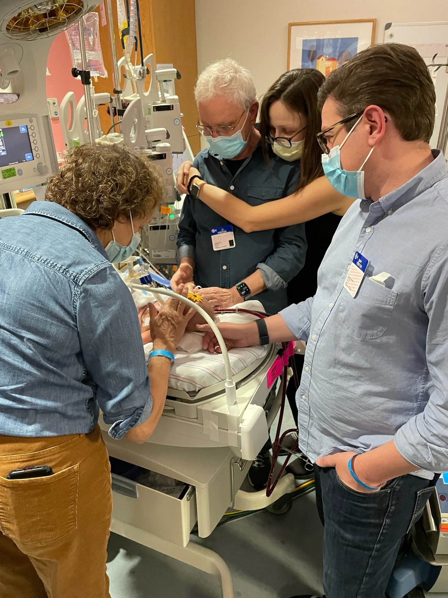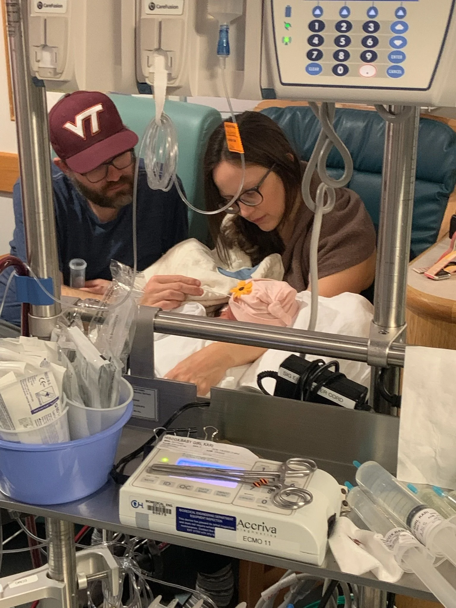 That day our siblings, Bryan and Diana got to meet their niece for the first time and new grandfathers Alan and Dwight saw their first granddaughter. They were limiting the number of people at the bedside so many of these moments we missed as a family. But all in the name of safety and making sure her medical team had the appropriate access. We went to bed that night hoping that the ECMO support turn down over night would be successful and they would be able to try to turn off her ECMO for the last time in the morning.